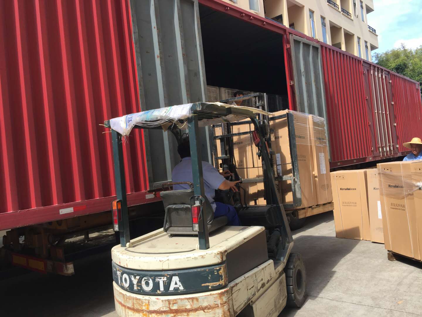 22.5米車廂整整一車科瑞萊工業(yè)環(huán)保冷風機空調(diào)KD18機器整裝待發(fā),謝謝客戶對我們科瑞萊品牌的信任與支持。